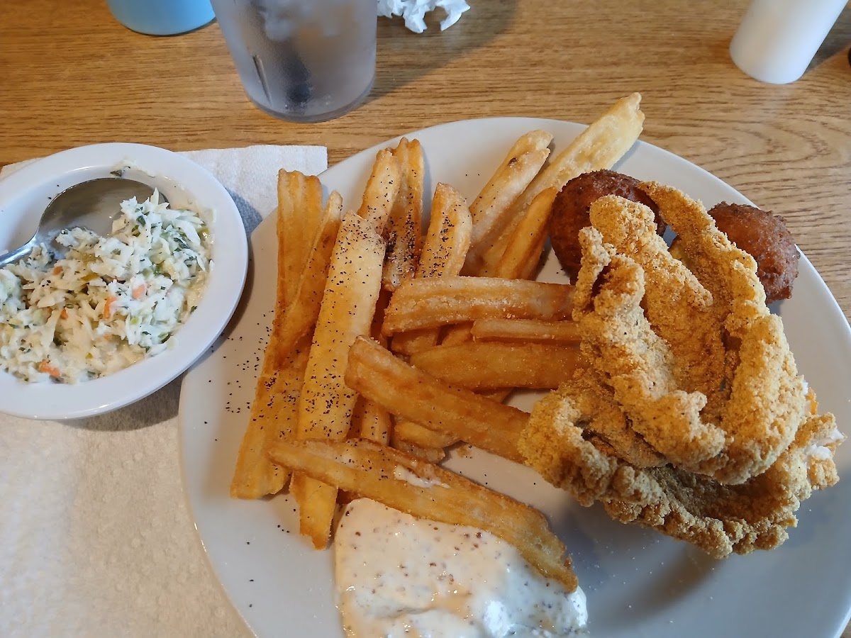 The menu leans heavily into seafood classics, and that’s a good thing. Fried catfish shows up golden and crisp, with cornmeal coating that doesn’t overpower the fish. Shrimp baskets are generous, and the oysters, when in season, come out fresh and briny. On one visit, I watched a cook hand-bread shrimp to order, which explains why nothing tastes rushed or frozen. That attention to process matters; according to the USDA, seafood quality drops quickly when mishandled, and places that prep to order tend to preserve both flavor and texture. You can taste the difference here.