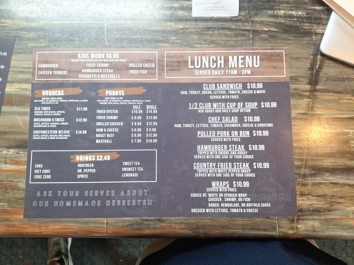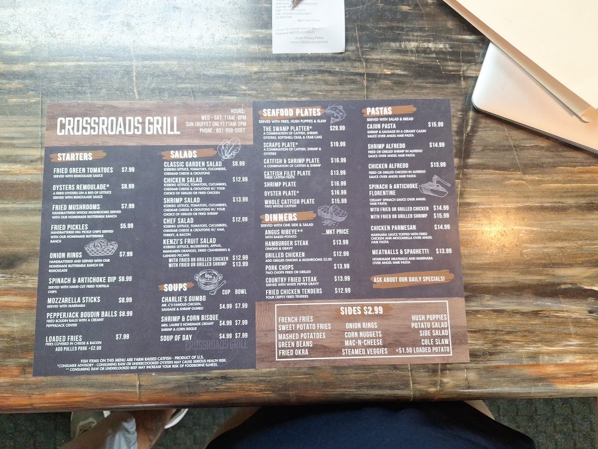 If you're in the mood for fresh, flavorful seafood and a laid-back dining experience, the Crossroads Seafood & Grill Menu is just what you're looking for. Located at 3653 MS-26 in Poplarville, MS, this spot is a local favorite that offers a variety of dishes to satisfy any craving. Whether you're stopping by for a quick bite or enjoying a leisurely meal with friends, there's something for everyone on the menu. From the juiciest grilled shrimp to perfectly fried catfish, each dish is prepared with care and the finest ingredients. The menu also features tasty sides, from crispy fries to refreshing salads, making it the perfect place to indulge in classic seafood flavors. The casual, welcoming atmosphere ensures you'll feel right at home as you dig into your favorites.