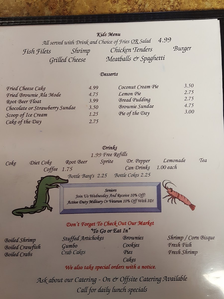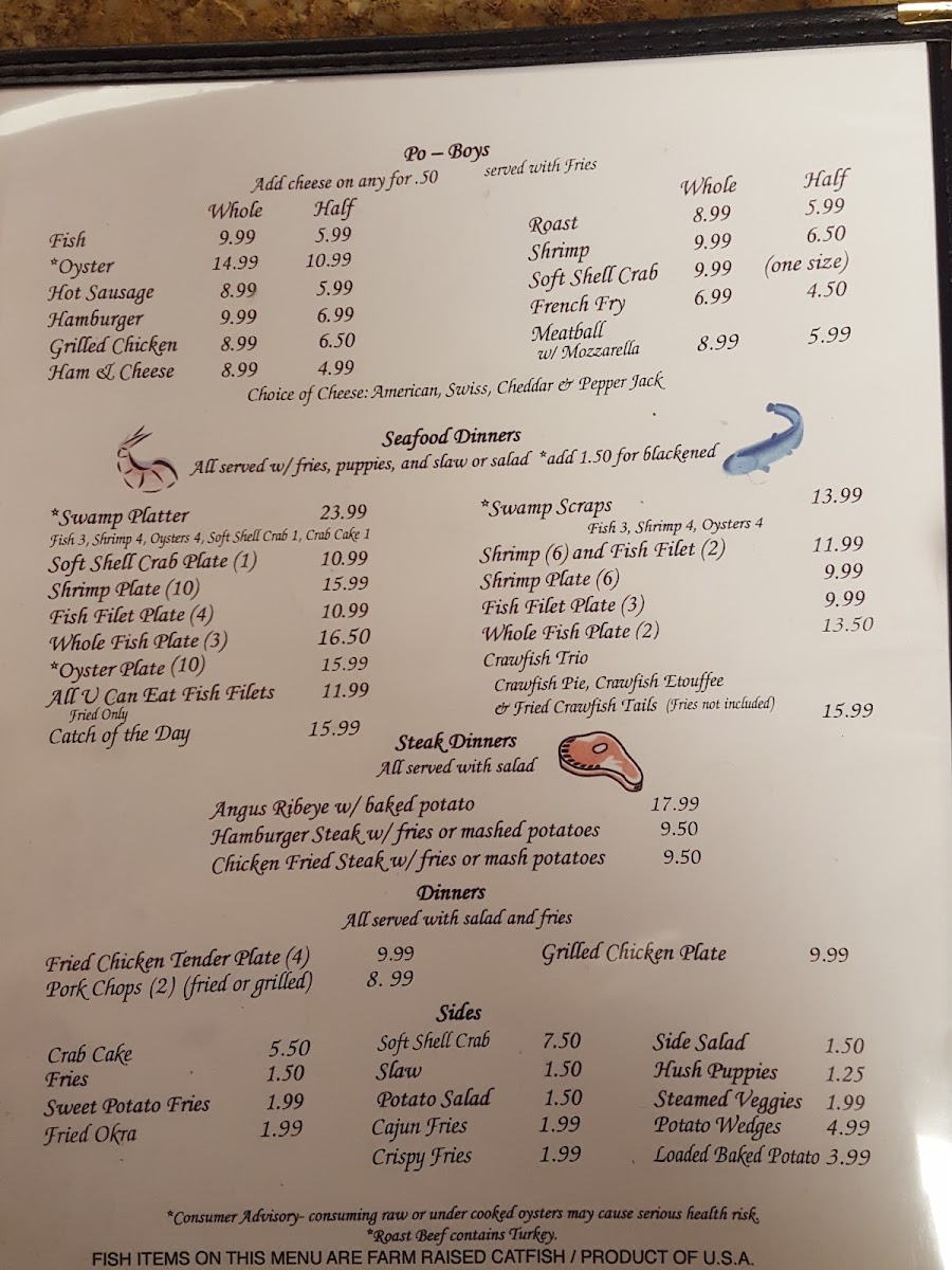 Soft Crab / Oysters, Catfish / Shrimp.